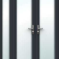 1490mm x 2090mm – Grey-on-White uPVC French Doors with Narrow Side Panel