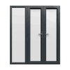 2090mm x 2090mm – Grey-on-White uPVC French Doors with Narrow Side Panel